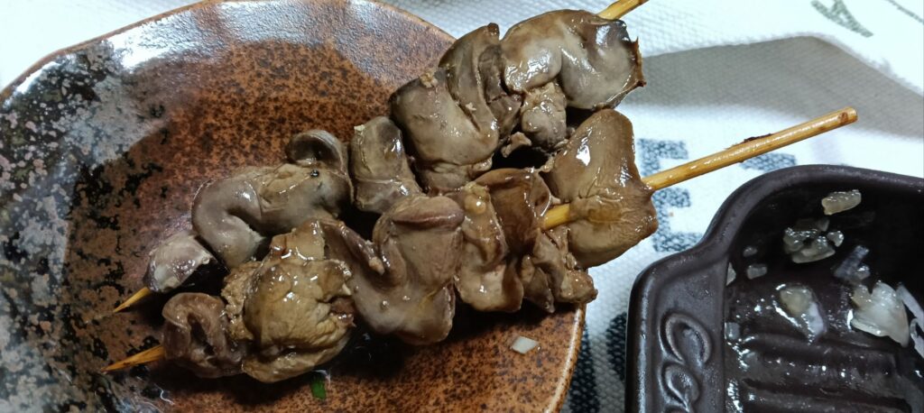 横浜は名物鳥屋、梅やのレバー串二本と